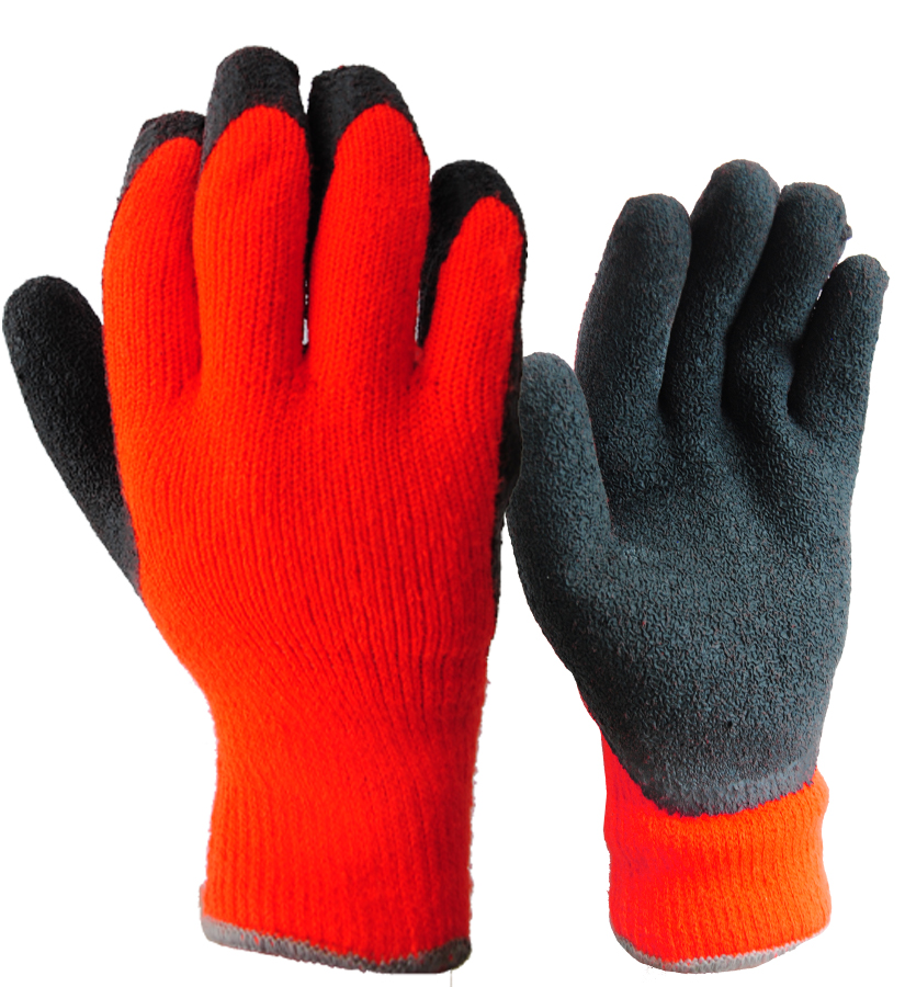 Crinkle latex coating on fluorescent Nylon seamless liner remains in cold tempreture